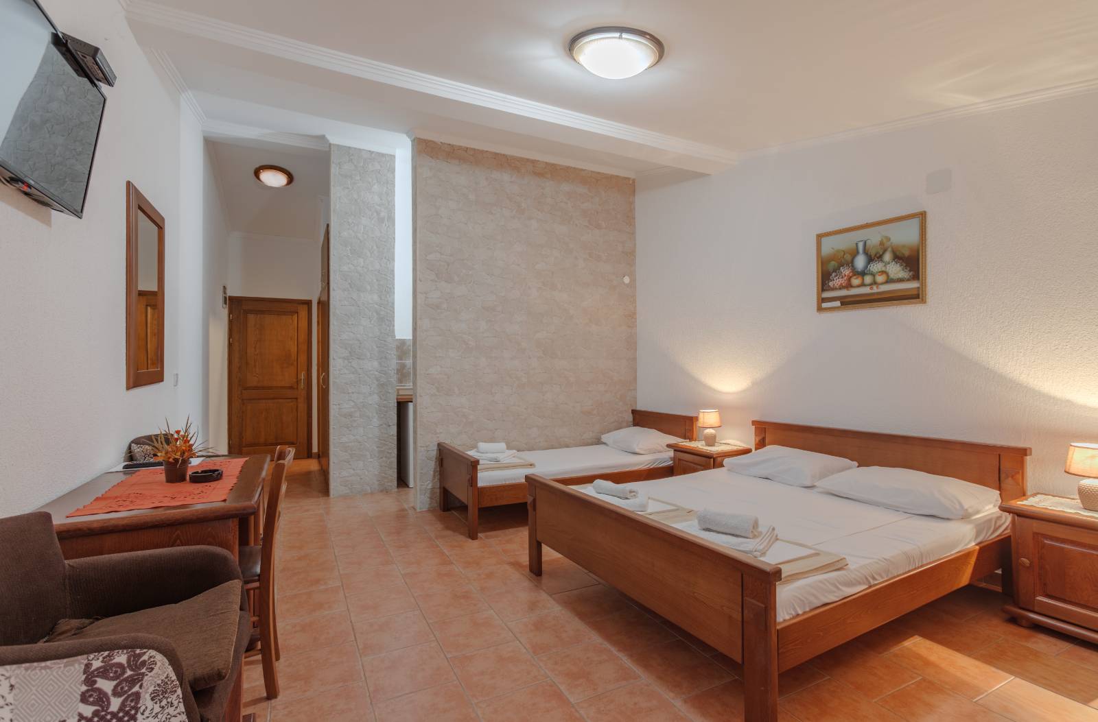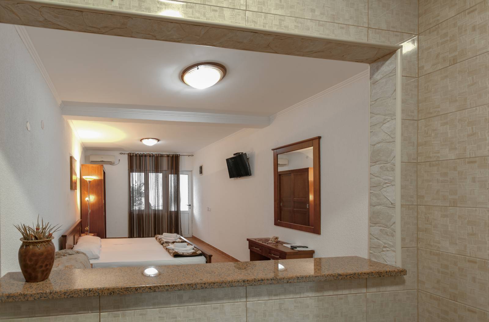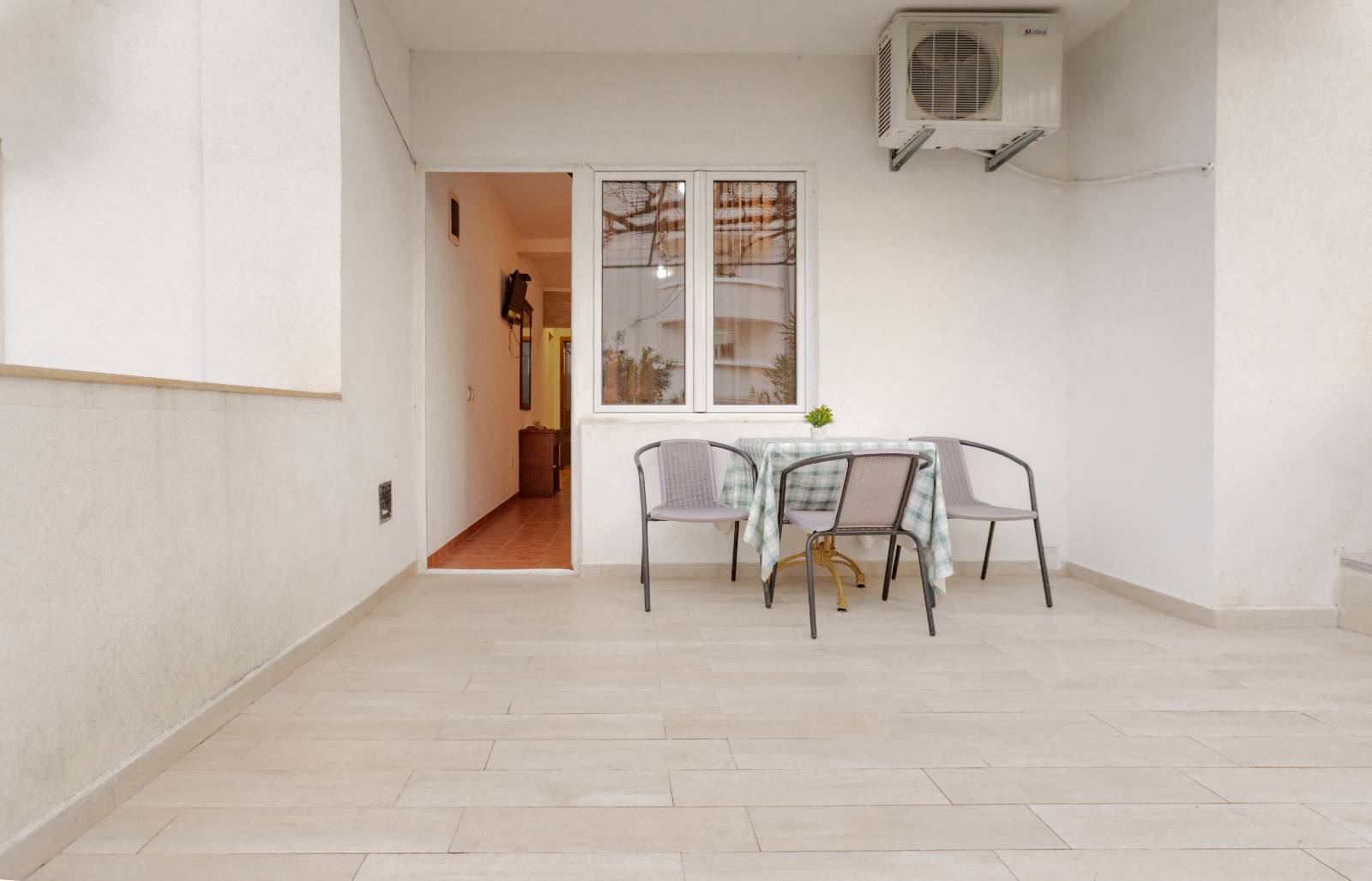 Our hotel features a seasonal outdoor pool, ideal for relaxing and enjoying warm summer days. The pool is rectangular in shape with crystal clear water, perfectly integrated into a modernly decorated courtyard, which exudes elegance and peace.